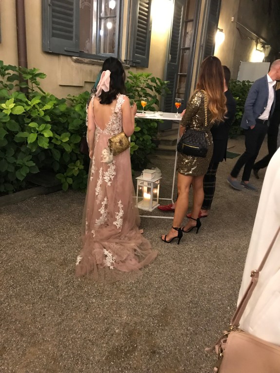 Era presente anche la influencer di turno, tale xy (giuro non mi ricordo il nome) giovanissima in abito da sera color rosa cipria, ricamato, e con tanto di strascico, accompagnata dalla manager con i capelli tinti azzurro verdi e un vestito/tuta (mi pare fosse una sorta di tuta) in stampa pitonata. Eh già.
