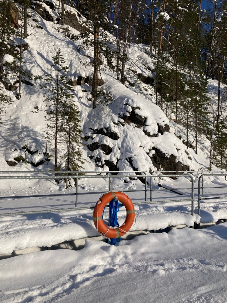 E fuoco, perché in ogni parco c’è almeno un punto ristoro, dove fare il fuoco e cuocersi o scaldarsi qualcosa. C’è sempre anche una legnaia piena di ciocchi pronti e l’accetta per tagliarli. Spesso c’è anche una costruzione di legno che può fare da rifugio, in caso di necessità. Stamattina sembrava nuvoloso, poi il sole ci ha illuminato ancora. E la neve fresca, beh la neve fresca non ha prezzo #bellezza #neve #ageinggracefully #lapponia #happiness